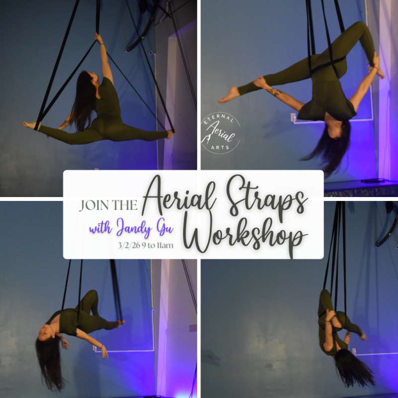 Strength meets artistry in this Aerial Straps Workshop led by Jandy, a seasoned aerial instructor and performer known for her clean technique and powerful movements. This workshop will help students build confidence on straps.