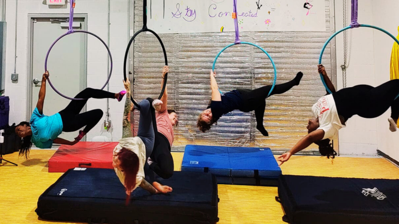 Discover the excitement of aerial hoop in a welcoming atmosphere. Designed for all experience levels, this class promotes strength, flexibility, and creativity, with tailored conditioning and skills to support each participant's journey.